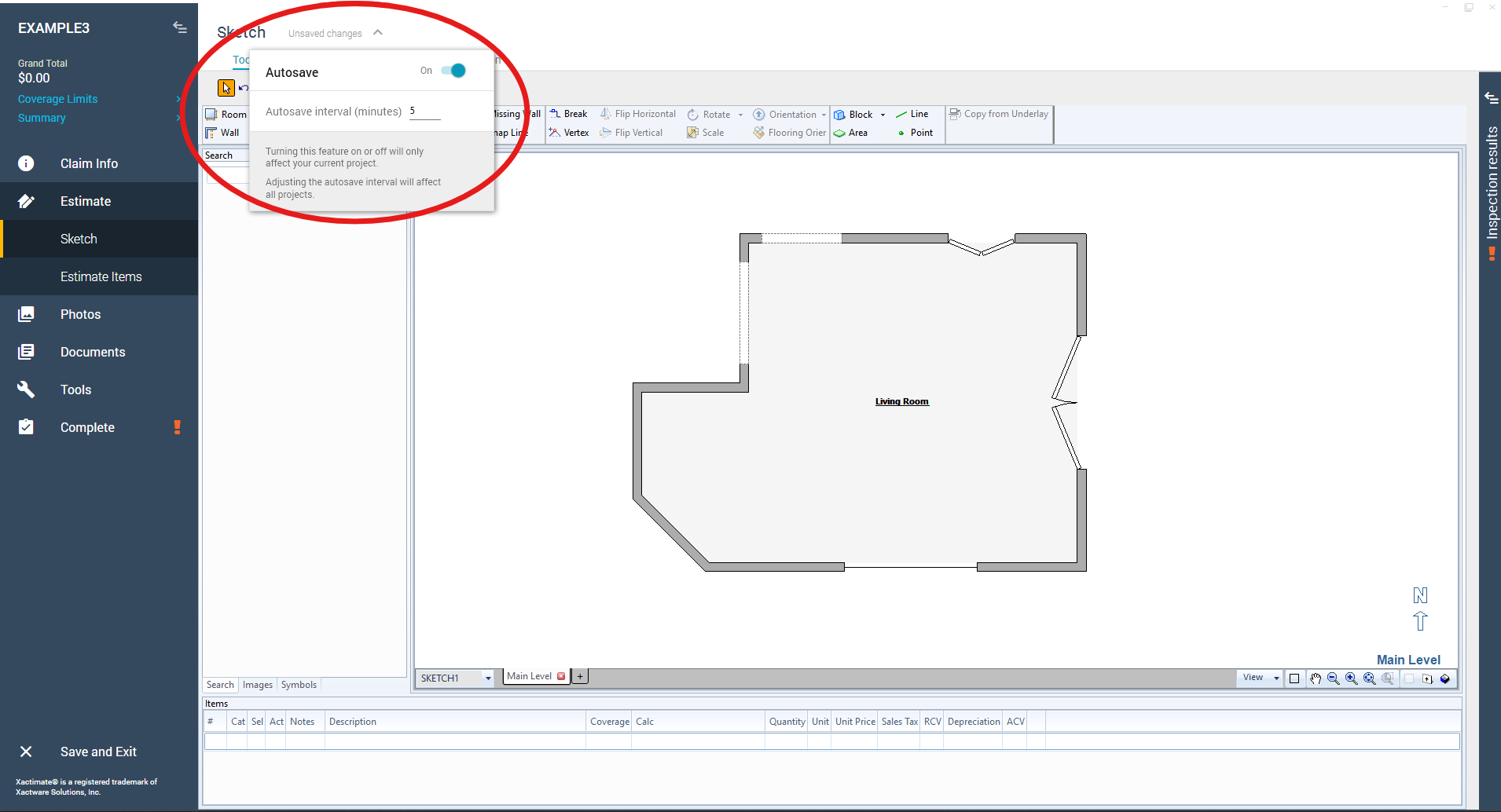 Xactimate autosaves every five minutes, but it’s good practice to check manually.