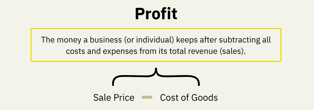 Profit = Sale Price - Cost of Goods. In this case, profit = $9.00