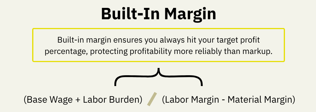 Formula: (Base Wage + Labor Burden) ÷ (Labor Margin - Material Margin)