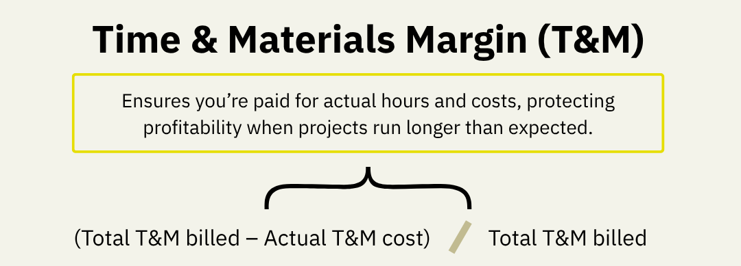 Formula: (Total T&M Billed – Actual T&M Cost) ÷ Total T&M Billed